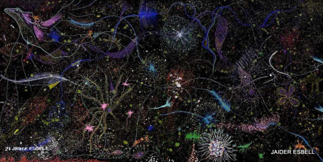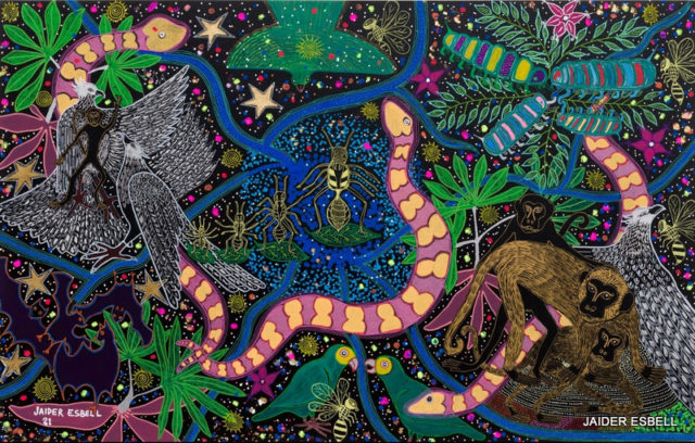 Las ilustraciones son obras del recientemente fallecido artivista indígena macuxi brasilero Jaider Esbell. Sobre su obra, se pueden consultar estas dos notas, de donde provienen las imágenes: «Jaider Esbell: Fisuras entre los mundos» (Transas, UNSAM) y «Jaider Esbell: el hombre en el paisaje» (El Ojo del Arte).