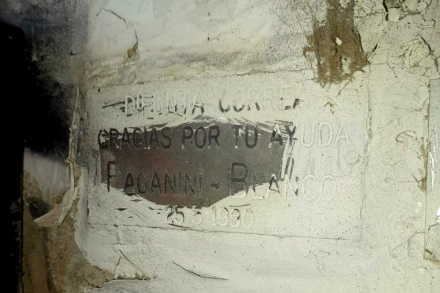 Chapa recordatoria en la ermita de la Difunta Correa de Arroyito.  Foto propia, agosto de 2024.