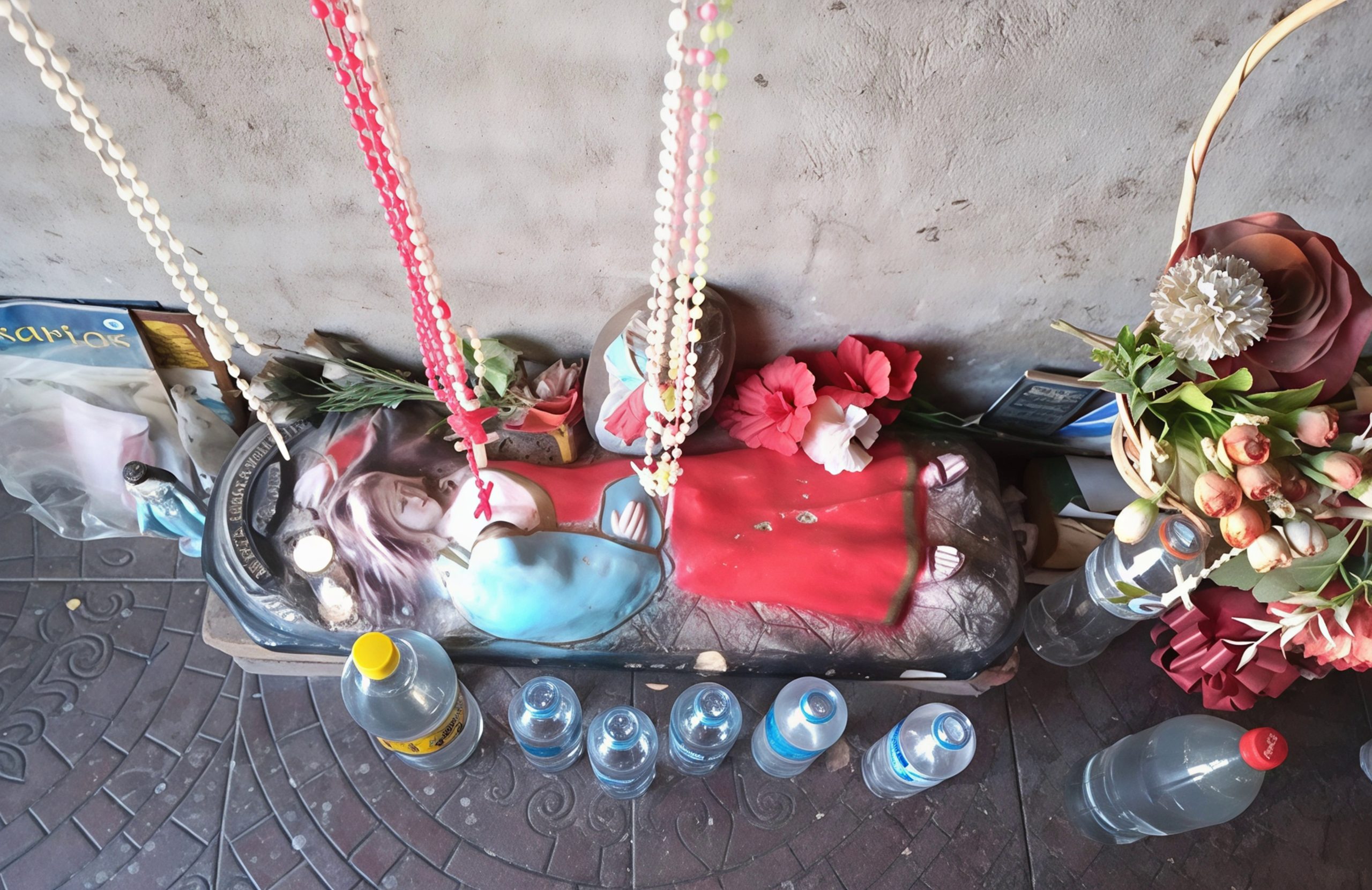 Fragmento de entrevista realizada en el recorrido: “La capillita viene desde antes de los 90, la fecha salió en la conversación con la dueña del puesto de verduras. Eran casi las 18 horas y ella y su hija atendían a varias personas a la vez. Hice algunas preguntas, para tratar de saber quiénes habían realizado esa construcción. La respuesta: “los Flores Automotores”, me daba a entender que era una familia muy conocida en Fiske Menuco (General Roca). Siguió relatando la dueña, mientras pesaba las compras de los clientes, que antes la imagen que había era muy grande, pero que los Flores se fueron y se la llevaron, dejando las dos imágenes pequeñas que se observan ahora.” (5/7/2024).